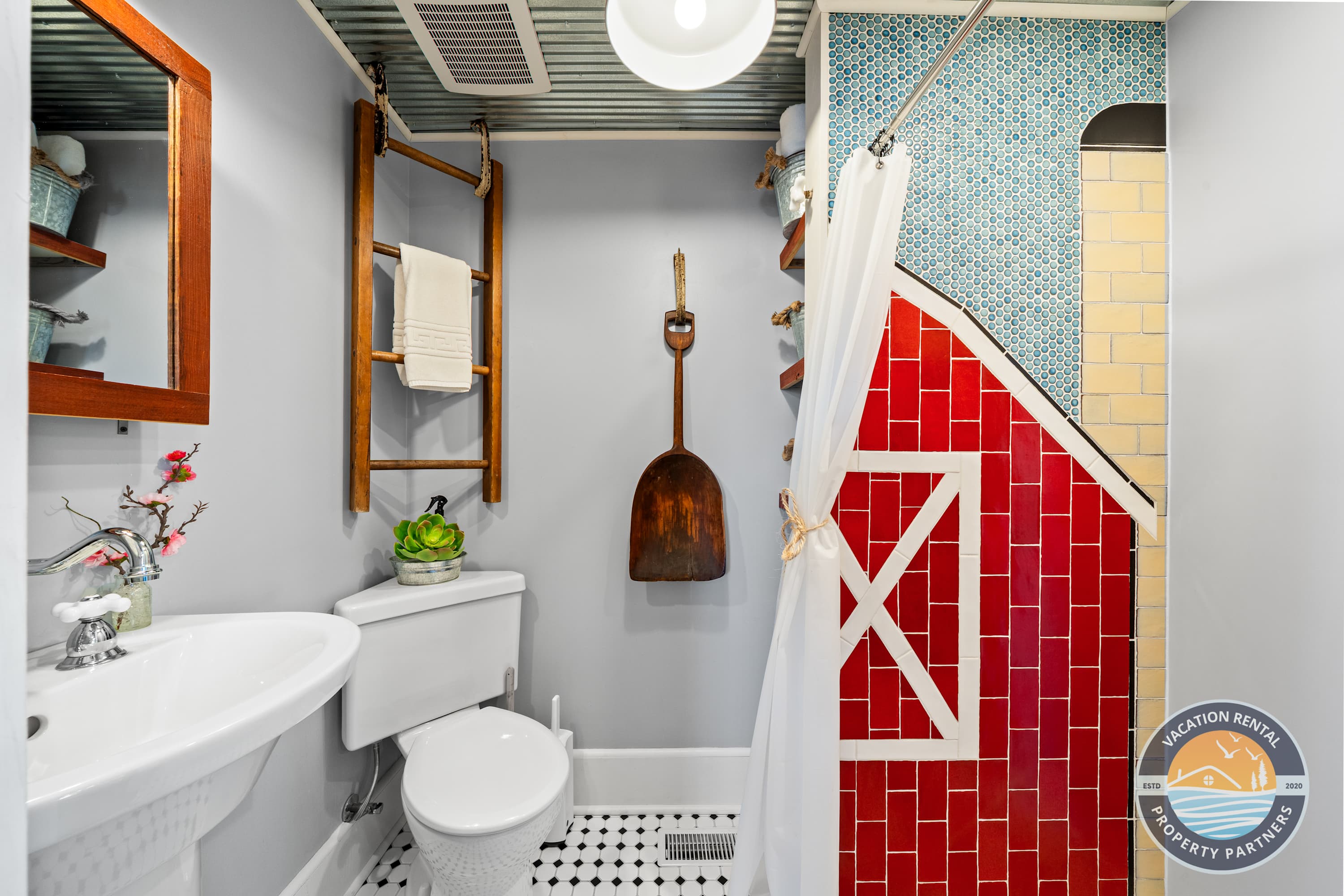 • Bathroom 2: Custom barn door, walk-in tiled shower, heated floors, artisan tilework