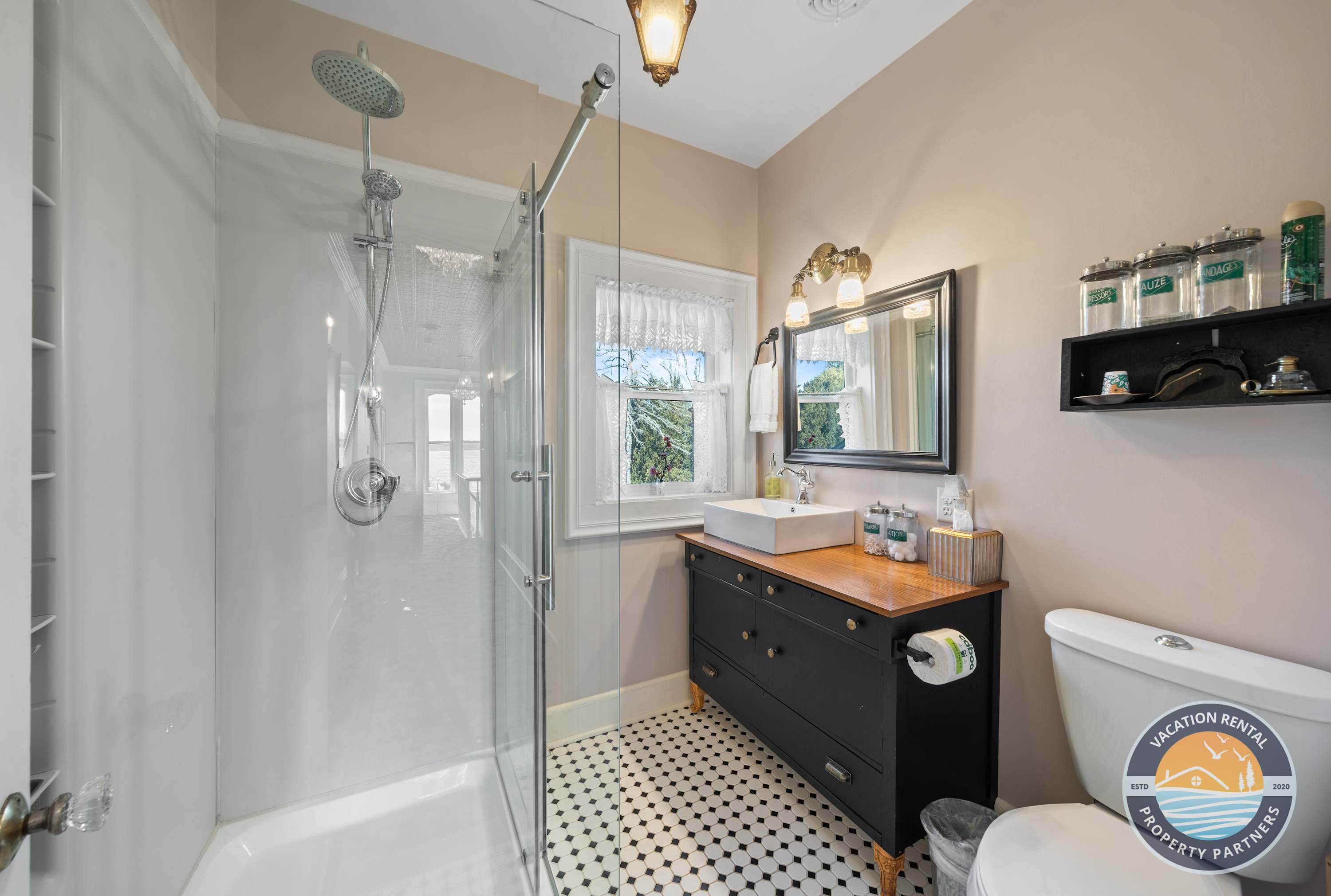 • Bathroom 3: Modern glass shower, heated floors, heated towel rack